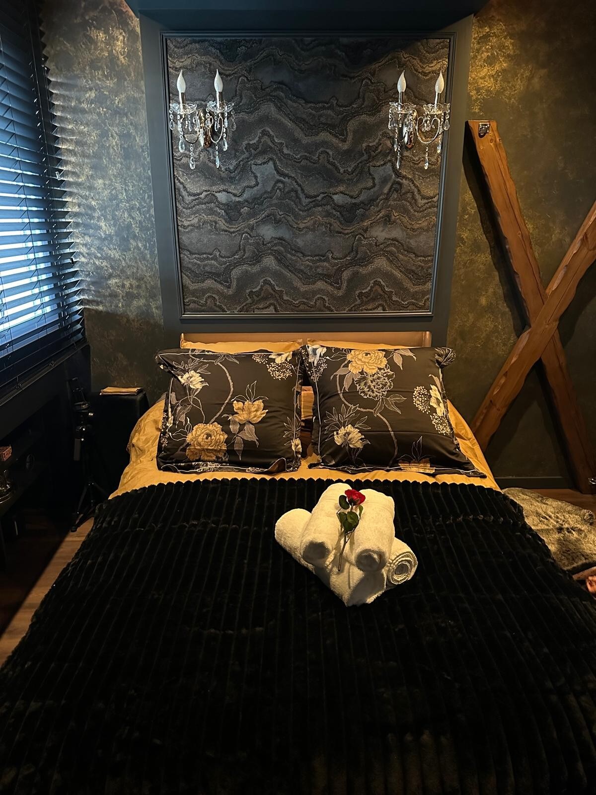 🖤 Suite romantique et insolite aux portes de Nantes Offrez-vous une expérience unique en couple dans cette suite élégante située à Indre . Pensée dans un design noir et mystérieux, elle crée une atmosphère immersive idéale pour une escapade romantique, charnelle ou une nuit insolite. 🛁 Grande Balnéo 2 places relaxante 🚿 Douche moderne vitrée 🛋️ Fauteuil design ergonomique ✝️ Croix de Saint-André design intégrée 🎁 Accessoires originaux à disposition 📍 À seulement 10 minutes de Nantes