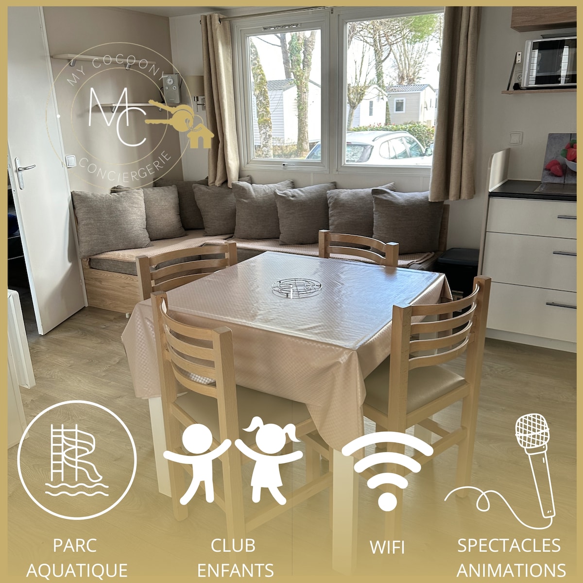 Découvrez le mobil-home "Les Tamalou", au cœur d'un camping ***** avec accès direct à la plage et parc aquatique. C'est notre mobil-home personnel que nous louons lorsque nous n'y séjournons pas : nous ne sommes pas un service hôtelier. Nous louons uniquement pour 7 nuits minimum, du samedi au samedi. Prenez le temps de parcourir l'annonce et le règlement intérieur (tout en bas de l'annonce) avant de faire votre demande de réservation 😉