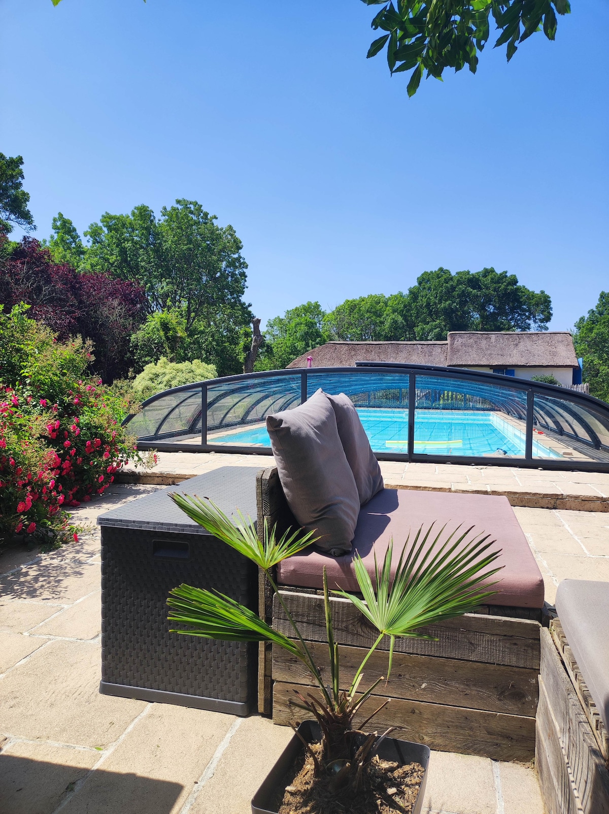 A quelques minutes de la mer et dans un cadre verdoyant, studio tout confort où vous passerez un séjour au calme et très agréable, et pourrez profiter de la piscine couverte chauffée et du spa en toute sérénité. Situé dans une impasse, pas de voisinage, On peut rejoindre le centre ville à pied et aller se ballader sur les sentiers qui longent la côte. Réservez une prestation BIEN-ÊTRE et ESTHÉTIQUE auprès de Cécile Bien-être et Beauté, massages et soins du visage.