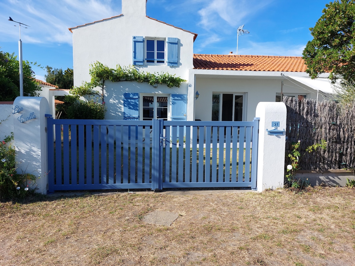 Une maison sur une Ile ! Au milieu de Noirmoutier ! en famille ou entre amis, pour un week-end détente ou des vacances à la mer; à 100 m, on pêche à pied, on se baigne, aux rythmes des marées ; au RDC, se trouve 1 bel espace salon/salle à manger convivial, 1 cuisine, salle de bain, WC et 2 chambres + 1 à l'étage, ainsi que 2 agréables terrasses Est et Ouest; à pied ou à vélo tout est proche, les petits et grands commerces, les liaisons des bus, de l'île, vers Nantes, gares et aéroports...