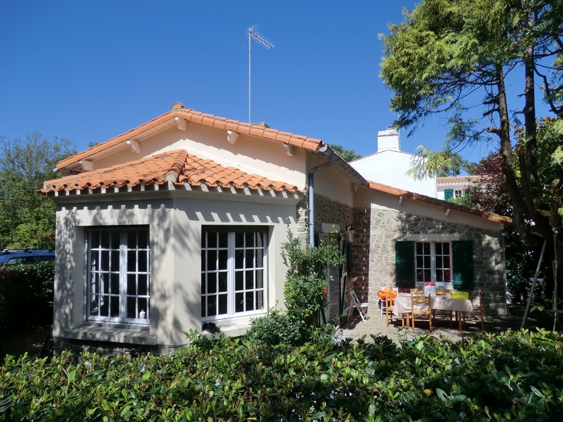 Logement classé de Tourisme Nous vous proposons une maison pleine de charme fraîchement rénovée en 2019 pour vos vacances et weekends. Elle est faite pour un séjour en famille ou entre amis. Votre animal de compagnie est aussi le bienvenu car le terrain est entièrement clos. Elle est idéalement située face à la forêt, à 300 mètres de la plage et 150 mètres des commerces. Notre Dame de Monts est à 15 km de l'île de Noirmoutier, 15 km embarcadère pour l’île d'Yeu, 30 de St Gilles Croix de Vie