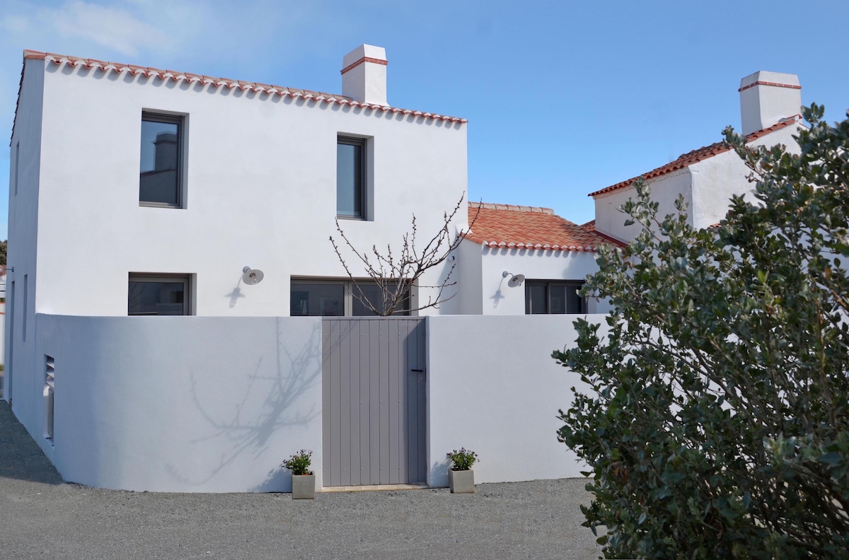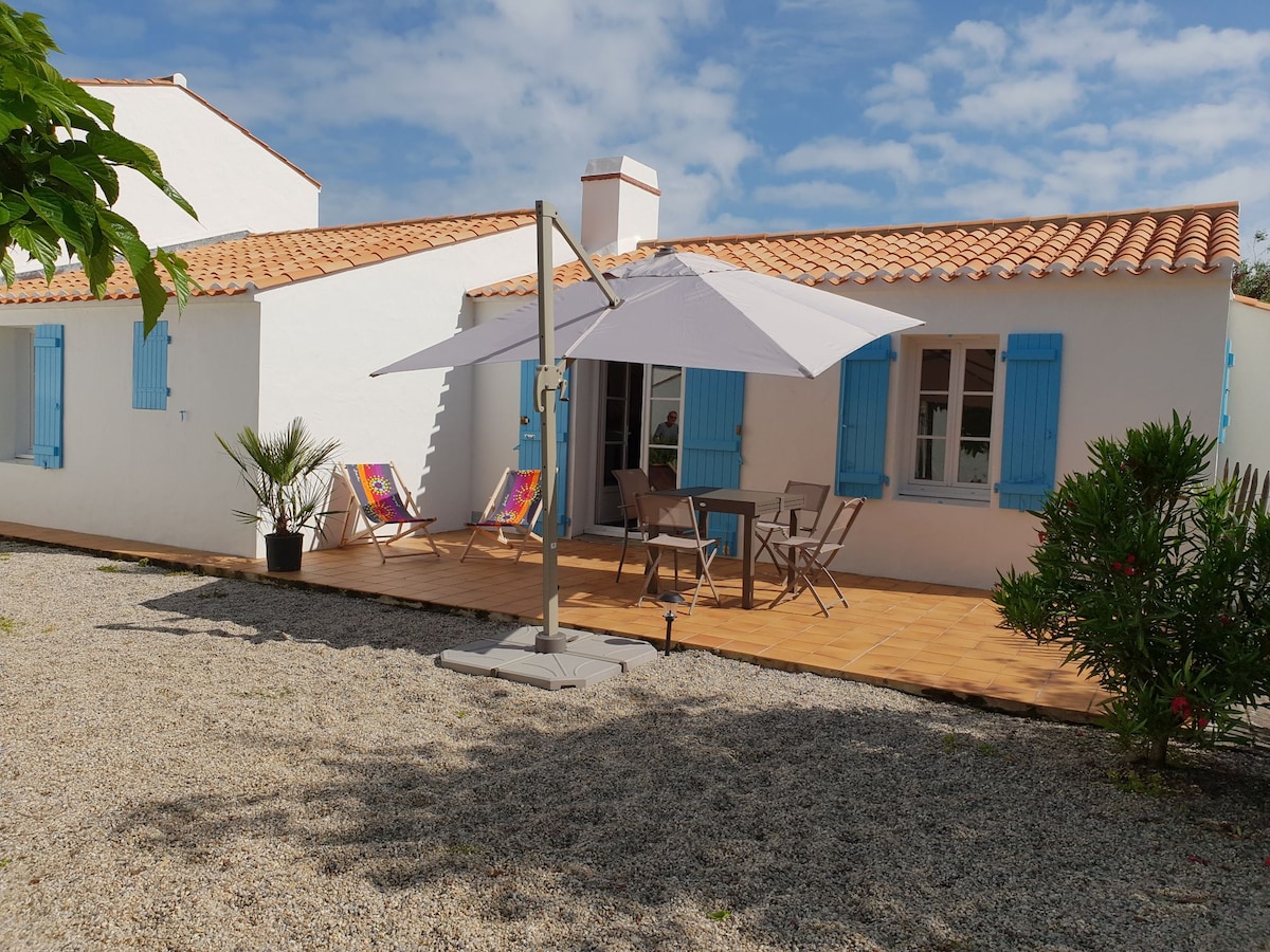 Petite maison entièrement rénovée avec goût et très bien équipé. Vous disposez d'une cours équipé d'un salon de jardin et de 2 chiliennes. Situé près de la plage, du port du bonhomme et des pistes cyclables. De avril à septembre une supérette ainsi qu'un bureau de tabac se trouve à proximité.