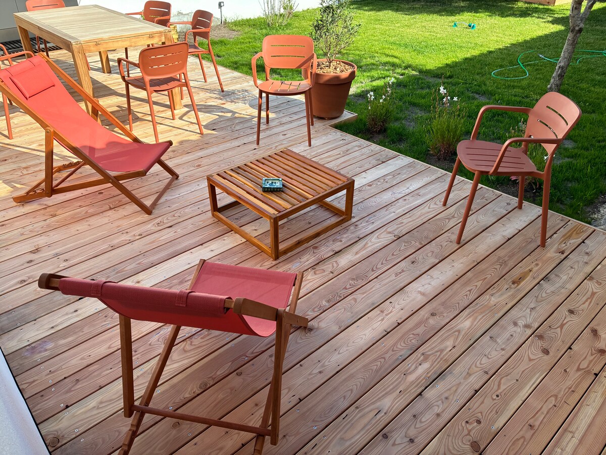 田园诗般的花园,距离海滩仅3分钟步行路程