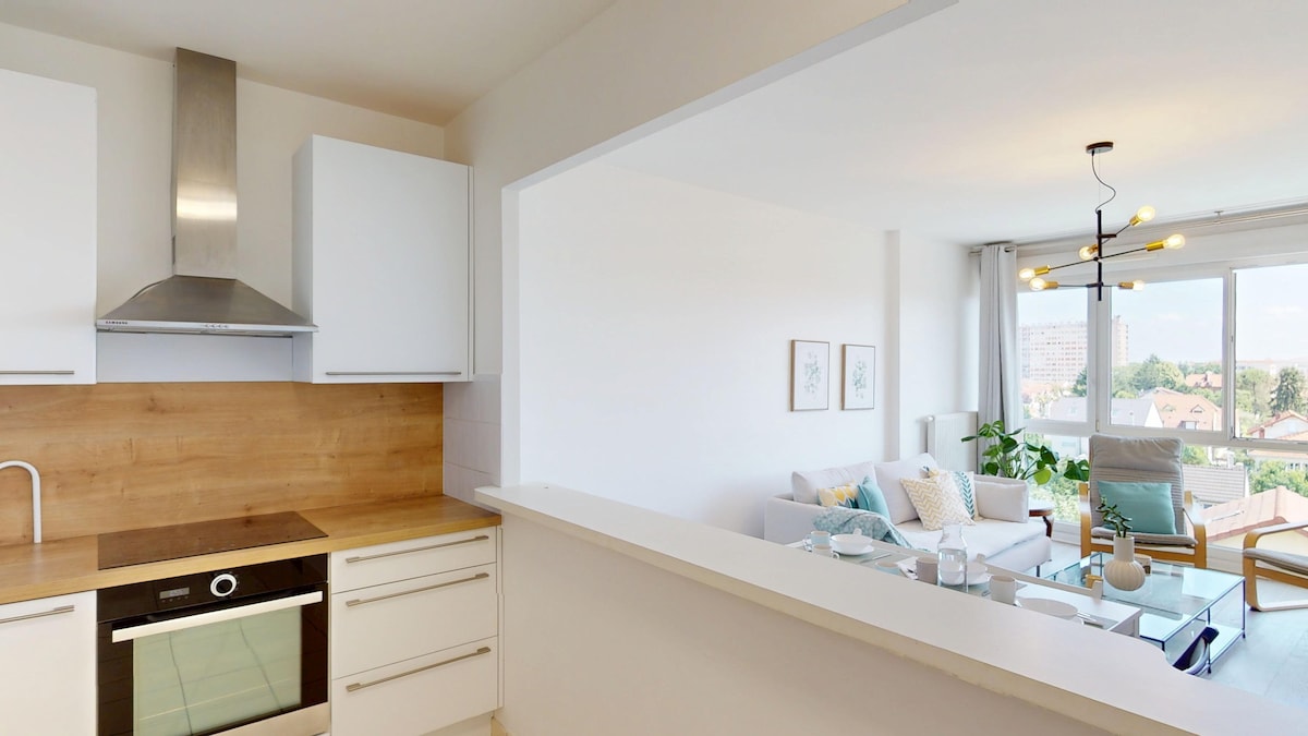 SPECIAL WINTER OFFER (until April 2025): 5 nights = -10% / 7 nights = -15% / 14 nights = -20% / 30 nights = -30 Imagine a modern, minimalist and naturally sunny space, with a comfortable bedroom and a private balcony: ideal for relaxing. Located in a new residence, this flat will win you over with its quality facilities and ultra-fast Wi-Fi. Ideal for business travellers, couples looking for a cosy nest or families dreaming of Disneyland.