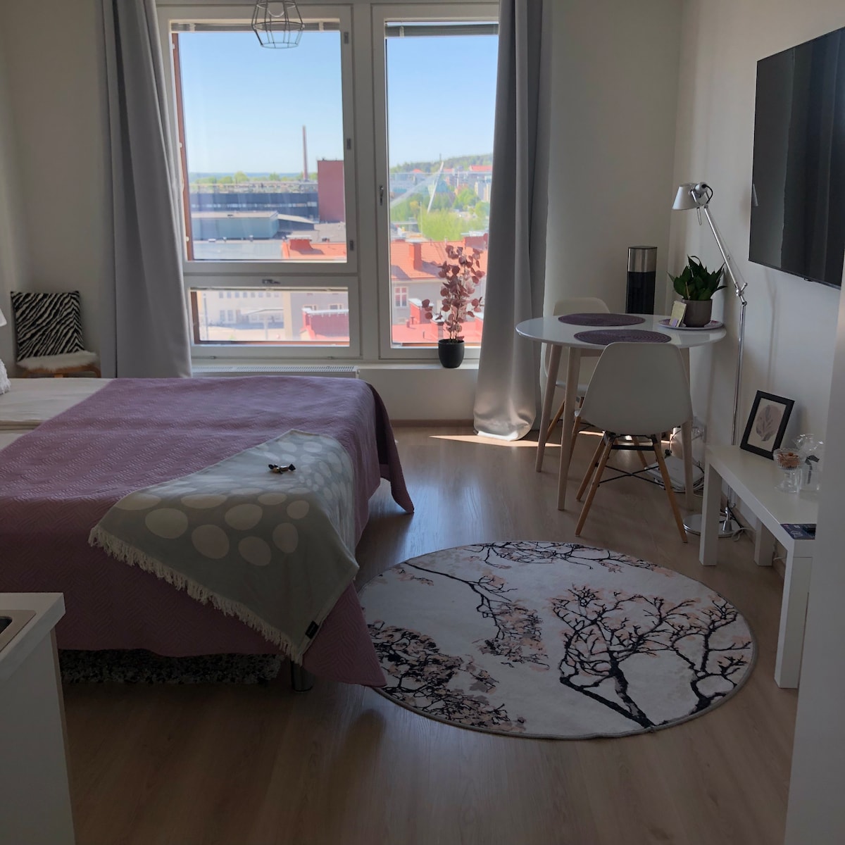 - Air cooler - Wifi - Refreshments - Blackout curtains - Self check-in - Washing machine - Smoke detectors, first aid kit, and safety locks Stylish studio apartment in the city center, with views of the Ratina and Koskikeskus shopping centers and the Stadium. Nokia Arena is a 5-minute walk away. Quiet apartment on the 4th floor, no elevator. Note! Final cleaning is not included in the price, guests are required to clean the apartment.