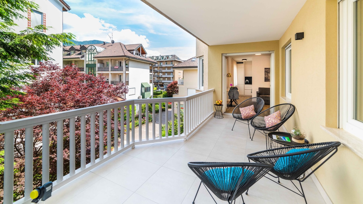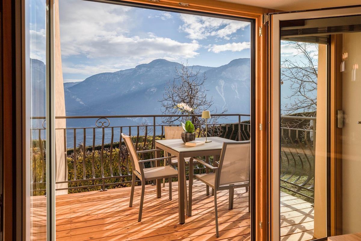 Liebevoll & modern eingerichtete Ferienwohnung, große Sonnenterasse mit bequemen Gartenmöbeln & das einzigartige Südtiroler Bergpanorama. Die Unterkunft in Kaltern liegt 5 entspannte Gehminuten vom hystorischen Ortskern entfernt. In unmittelbarer Nähe befinden sich u. a.: der Kalterer See, der Mendelpass, die Montiggler Seen und die Stadt Bozen. Die Unterkunft ist neu und überzeugt durch moderne Einrichtung & ihre idyllische, ruhige Lage. Zur Ruhe kommen, entspannen, Zweisamkeit genießen