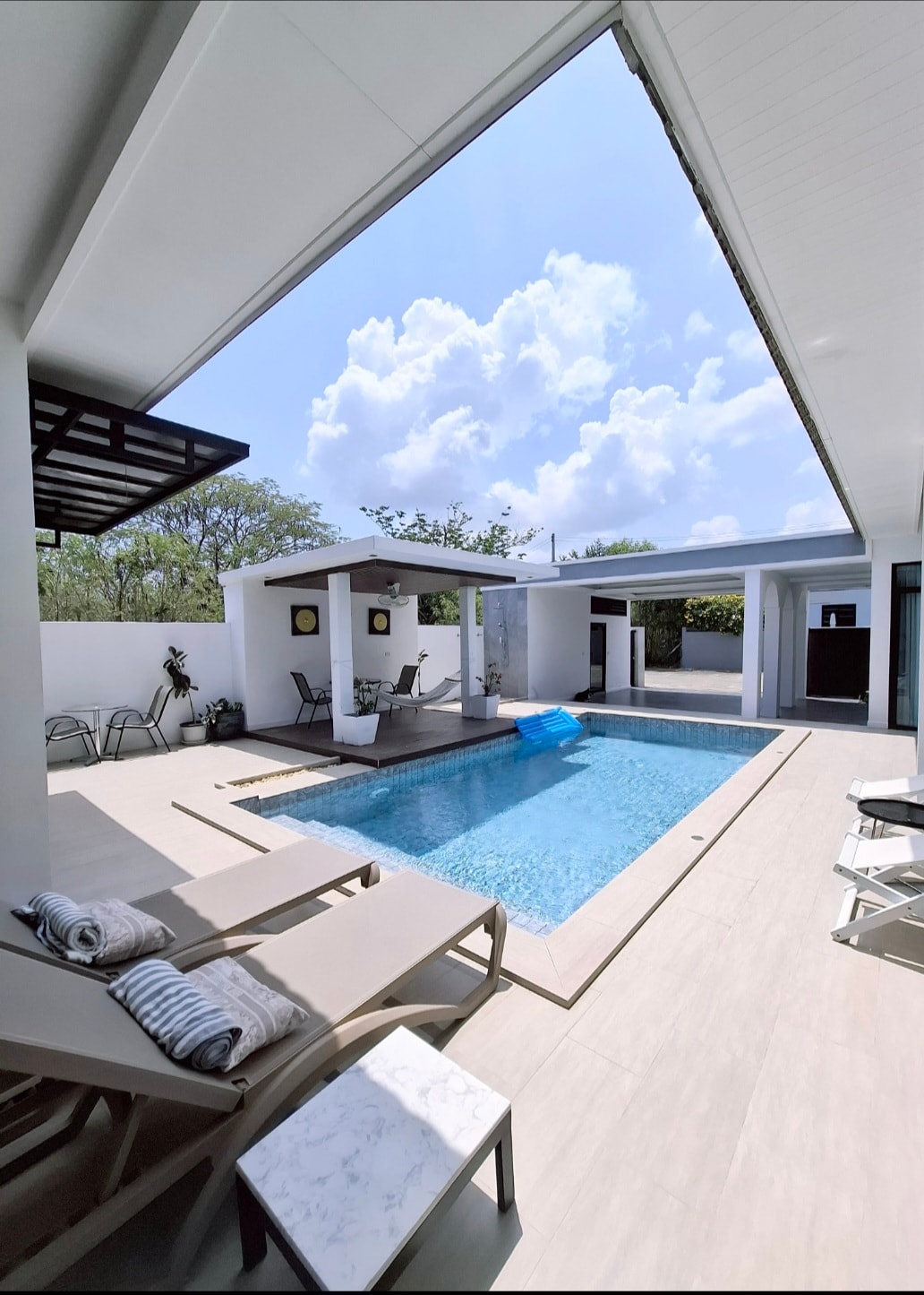 200 sqm Premium Private Poolvilla in a great and quiet location. 1500 meters to the Hua Hin main beach and 5 minutes away from the brand new Bluport Hua Hin Resort Mall. Restaurants, Cafes, Convenient stores (7-11), French Bakery etc. within a couple of minutes from the villa. In addition to the private pool you can also enjoy our club facility (1 min. walk) which includes pool area, small gym and beautiful garden.
