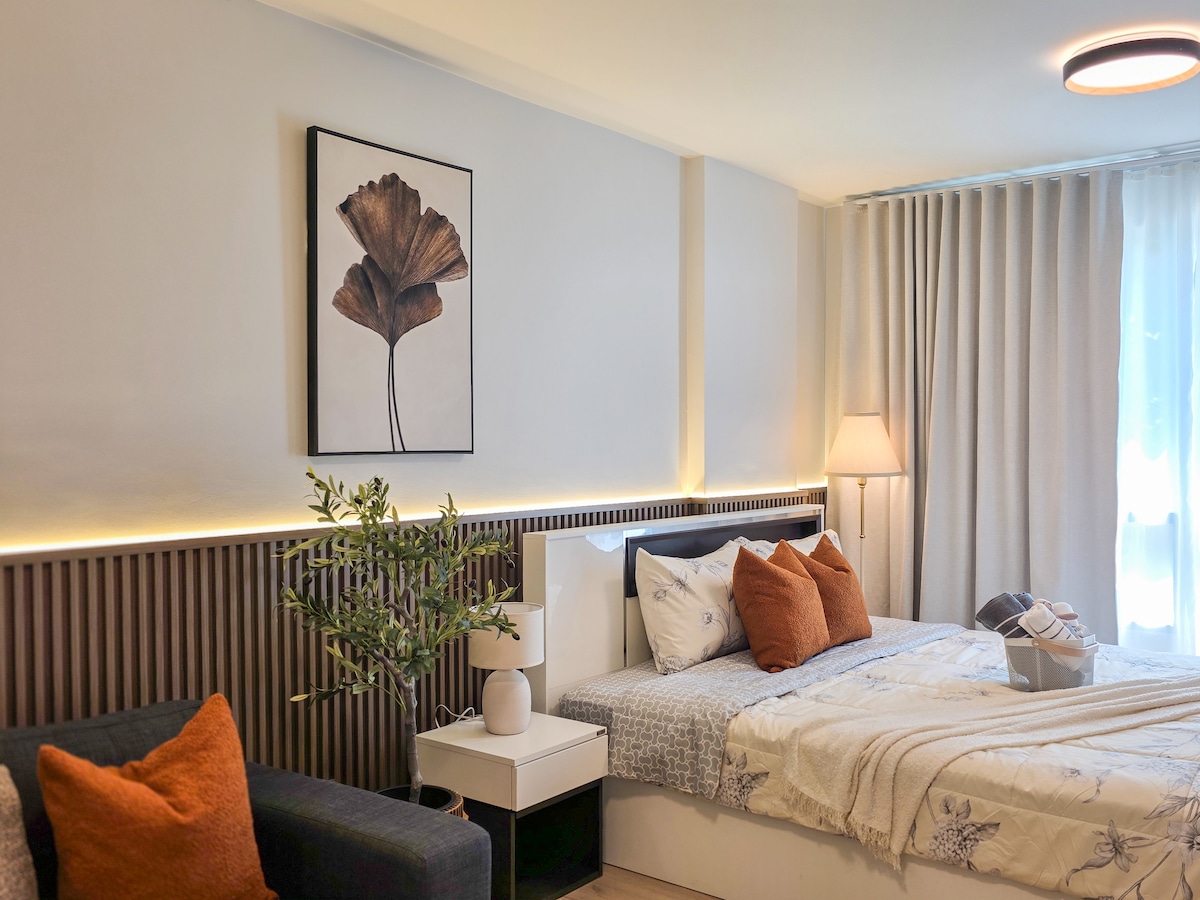 Cozy 1BR pool-view suite (34 sqm.) with balcony on a high-floor with a private washing machine Just 250m from the beach. Smart TV & Wi-Fi (Netflix-ready), and free capsule coffee machine & bathroom amenities. 🌴 Steps from Cicada & Tamarind Night Markets (200m), 7-Eleven (100m), and a short drive to malls, hospital & Hua Hin Airport (20 mins). Seaside escape with style, comfort & romance awaits. 💌 🚗 Extra convenience: Airport pickup service available upon request.