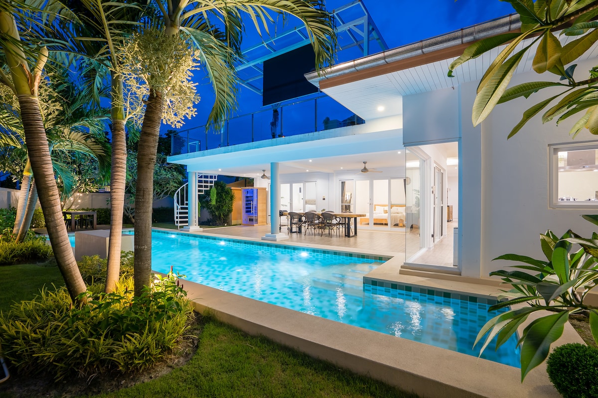 华欣 modern villa 封闭安全低密度小区独栋别墅 私家独立泳池 公共健身房。房主也在此小区常年居住,入住后有任何问题帮助可以随时与房主当面沟通。小区与皇家领地皇室公主庄园一墙之隔,是在华欣少有的几个与皇室使用同一水源的小区,小区地理位置在华欣地势较好,通风干燥,不会出现海边居住一样的潮湿发霉,即使是雨季台风也排水顺畅,全年不会有路面或小区淹水的烦恼,即使发生了太平洋海啸也不必担心,可保护你和度假的家人在台风、地震、海啸等自然突发状况的安全。想远离都市的喧嚣,回归纯净自然的好去处。小区附近有黑山高尔夫球场和黑山水上乐园(7分钟车程),到华欣火车站和海边沙滩浴场(10分钟车程)。附近自然风光极好空气清新,交通可自驾、租车出行或可电话预约订车,附近有多家饭店也可以不出门吃到正宗泰国大餐(Grab或Panda),附近有7.11、BIG-C大型超市、市场、酒吧、Thai massage等生活便利,与海边网红地点附近相比长期居住成本更合理。