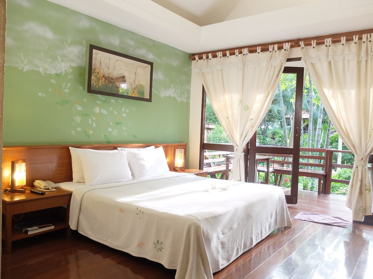 รีสอร์ทห้องเป็นหลังส่วนตัว มีทั้งวิวสวนและวิวสระ วิวสวนเหมาะสำหรับผู้ที่ชอบความเป็นส่วนตัวและความเงียบสงบ ระเบียงหน้าห้องกว้างขวางพร้อมโต๊ะและที่นั่งสำหรับนั่งเล่นหรือทานอาหาร และห้องวิวสระน้ำหน้าห้อง หน้าห้องมีโต๊ะและเก้าอี้นั่งเล่นหน้าห้อง สัมผัสกับบรรยากาศสวยๆของสระน้ำและความร่มรื่นของต้นไม้รอบๆรีสอร์ท