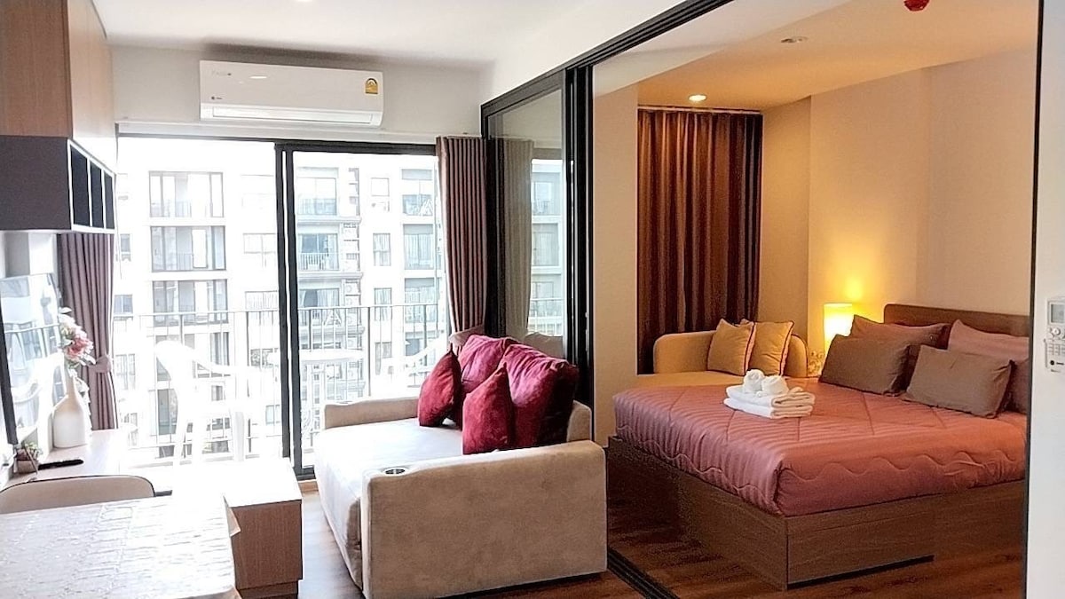 Welcome to a stylish newly built one bedroom condo. Fully furnished with modern luxury with pool view. The cozy bedroom prepare with fully comfort king bed mattress. The space offer a brand-new kitchen equipment. There are 2 smart TVs for living and bedroom. The room space is 50 sq.m. short walk to the beach, Cicada market and tamarind market. Many restaurants nearby. Wifi max speed with 300/300 mbps. Nespresso coffee machine provided. This room is perfect for your leisure or business.