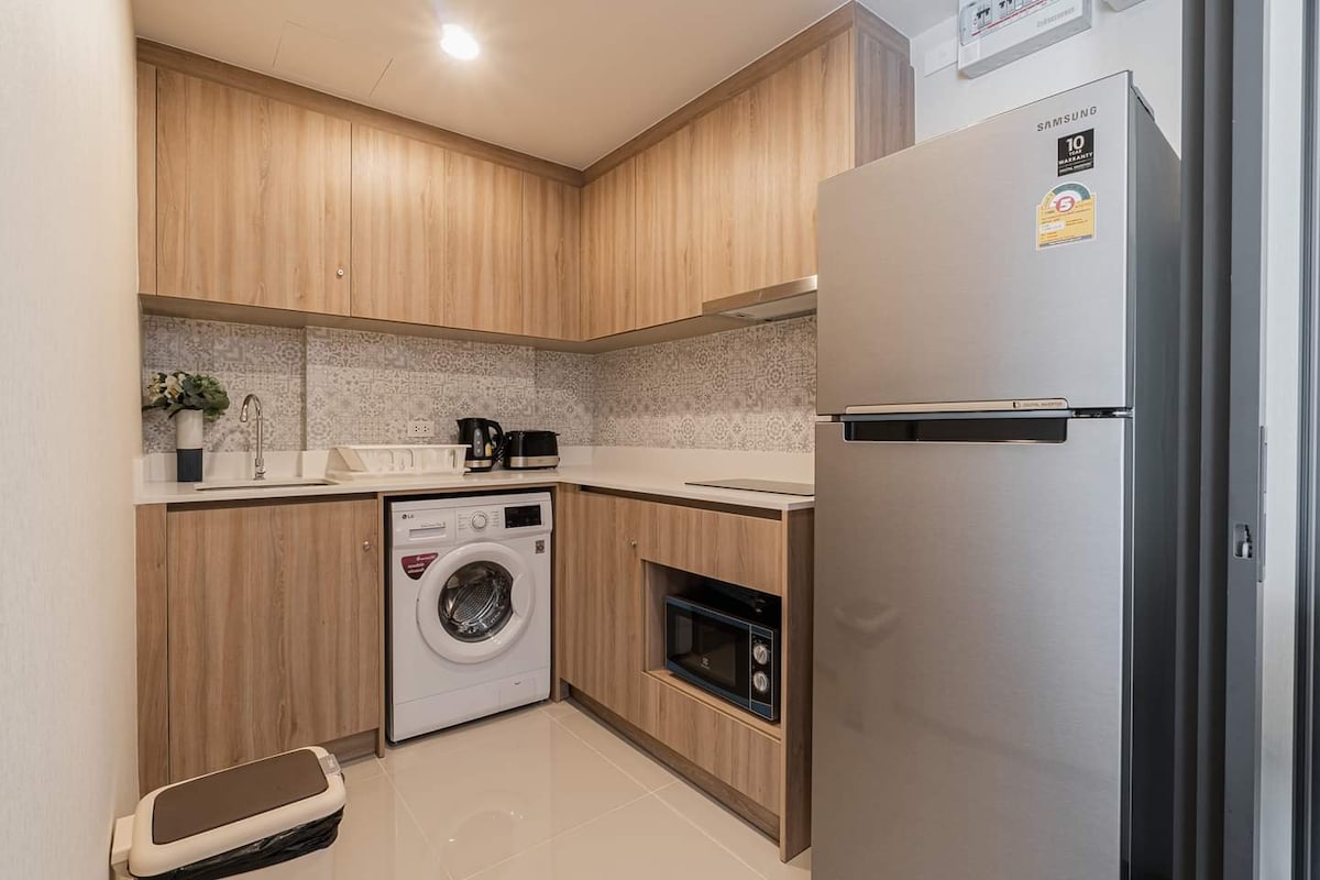 Cozy 1BR pool-view suite (34 sqm.) with balcony on a high-floor with a private washing machine Just 250m from the beach. Smart TV & Wi-Fi (Netflix-ready), and free capsule coffee machine & bathroom amenities. 🌴 Steps from Cicada & Tamarind Night Markets (200m), 7-Eleven (100m), and a short drive to malls, hospital & Hua Hin Airport (20 mins). Seaside escape with style, comfort & romance awaits. 💌 🚗 Extra convenience: Airport pickup service available upon request.