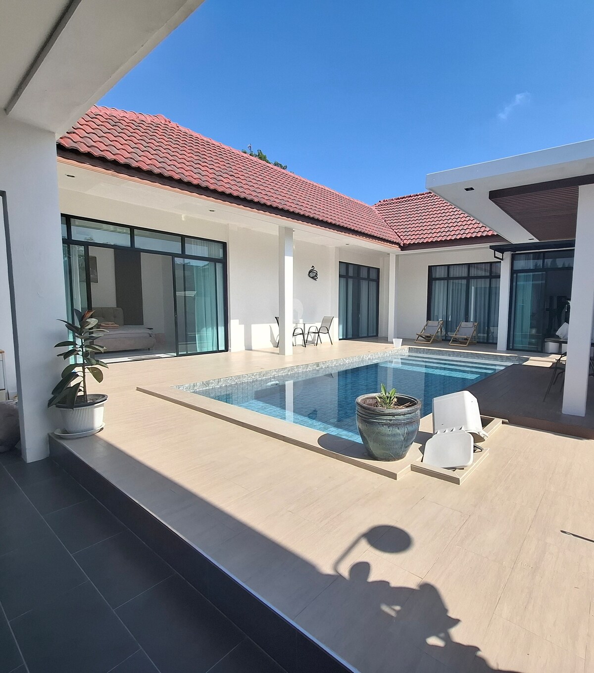 200 sqm Premium Private Poolvilla in a great and quiet location. 1500 meters to the Hua Hin main beach and 5 minutes away from the brand new Bluport Hua Hin Resort Mall. Restaurants, Cafes, Convenient stores (7-11), French Bakery etc. within a couple of minutes from the villa. In addition to the private pool you can also enjoy our club facility (1 min. walk) which includes pool area, small gym and beautiful garden.