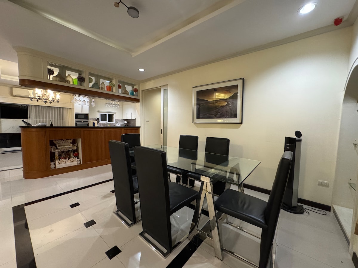 Close to the center of Pattaya, 6 bedroom villa with private pool, minutes from the Beach / City and Walking Street. The villa is tastefully decorated and has a large L-shaped living room; with modern furniture and a spacious kitchen, equipped with a big refrigerator, ice machine, freezer, cooker, rice cooker, toaster, coffee maker, microwave, oven and washing machine. The house is fully air-conditioned and has FREE High speed WIFI and Netflix.