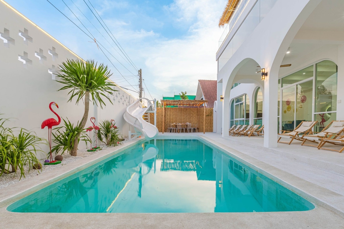 坐落于芭提雅市中心一处静谧宝地,Lake House泳池别墅如其名,依傍着一湾清浅水源,在繁华喧嚣中独享一片宁静天地。这里距热闹的市中心与蔚蓝海滩仅约10分钟车程,完美诠释了“闹中取静”的居住理想。 别墅采用现代轻奢简约风,将高端品质与舒适体验完美融合。超大的按摩泳池是这里的焦点,与户外烧烤区共同打造出完美的聚会空间。六套独立豪华套房均超越五星酒店标准,其中两间主卧更配备豪华浴缸,为您提供极致私享体验。 室内空间设计巧妙,开放式厨房与独立封闭式厨房满足不同烹饪需求,超大客餐厅区域是理想社交场所。别墅还精心规划了健身房、影音室和台球桌等休闲设施,确保住客足不出户也能尽享度假乐趣。 住在Lake House,您可轻松探索芭提雅迷人风情: · 步行可达的当地市集,品尝地道泰式美食 · 10分钟车程即可抵达芭堤雅海滩,享受阳光沙滩与水上活动 · 丰富多彩的夜生活与特色表演 · 附近高尔夫球场为爱好者提供挥杆乐趣 · 正宗泰式按摩与水疗中心让您彻底放松身心 无论是家庭度假、朋友聚会还是商务活动,Lake House泳池别墅都能为您打造难忘的芭提雅假日体验,让您在私密奢华中感受泰国风情。