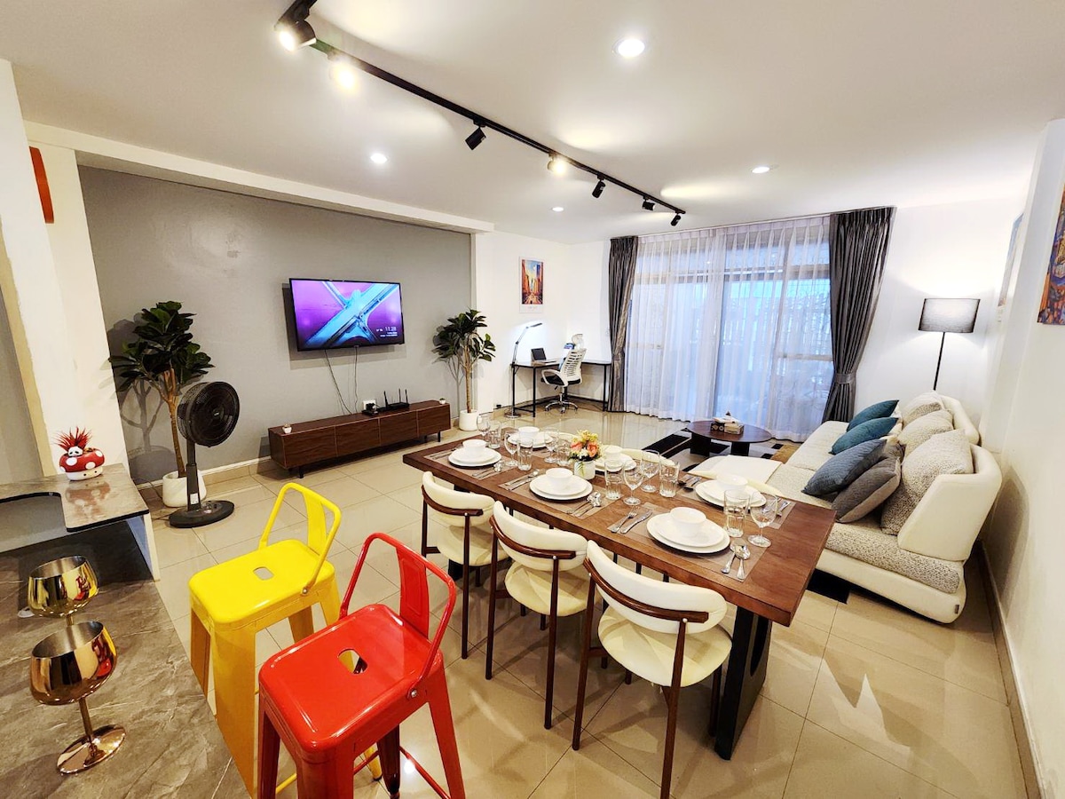 很荣幸被airbnb评为“超赞房东”,我会尽最大努力服务好每一位客人,airbnb上所有照片中设施均为真实拍摄。 🏠【房源介绍】 占地140平米的两层建筑,拥有3间独立卧室和2.5个卫生间,客厅,餐厅,封闭厨房。适合3-6人入住,适合亲子家属朋友旅行。在厨房空间,你将获得全套餐具,与亲朋好友一起烹饪美食。 该房源位于小区泳池的右侧。房屋有两层,两层房屋各有2.5个干湿分离的卫生间。房屋二层拥有三个臣室,一个主卧两个侧臣,共可以容纳6人居住。房屋配备无线网络以及无限网络电视,厨房配备厨具以及洗衣机。房屋门口便可无障碍停车。 小区出门200米有7-11便利店,便利生活非常快捷。并且可以使用Grab出行和点外卖。