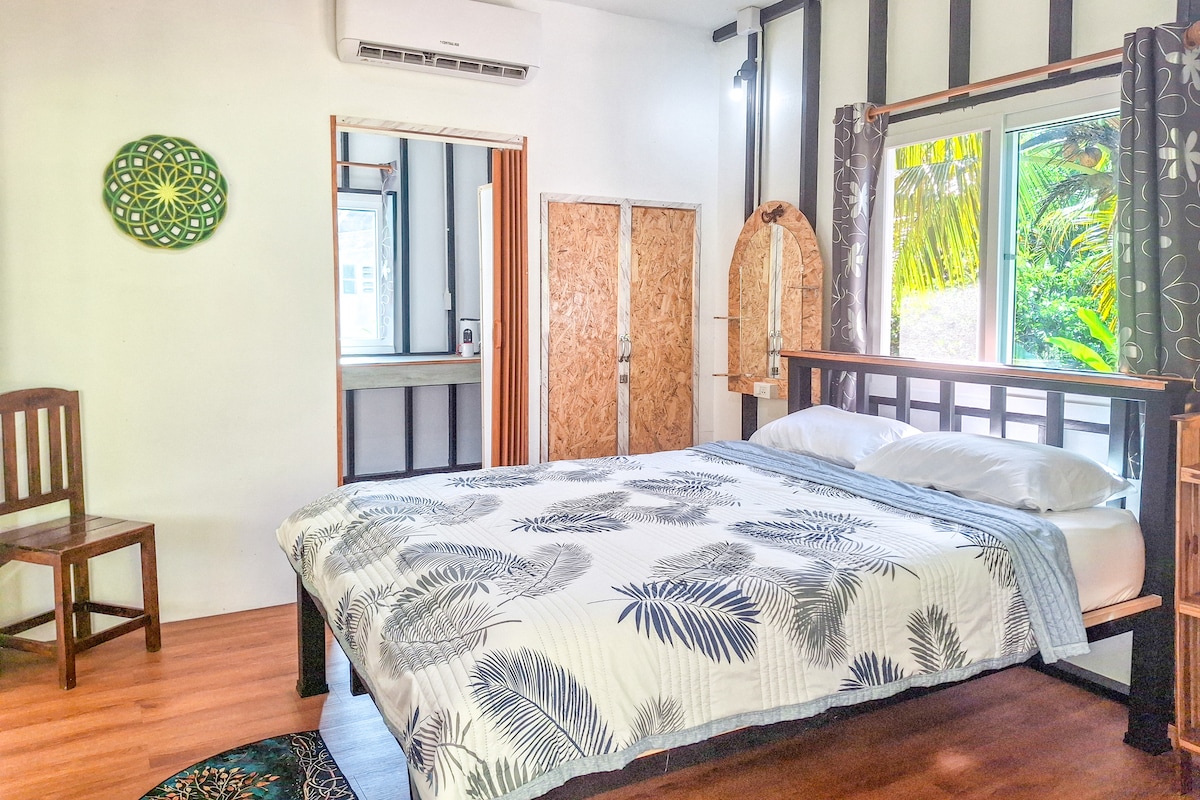 You will love the setting in our AC bungalow, surrounded by rubber and coconut trees, and close to the sea, where you can watch the local people go about their day and feel part of the community. You will will also enjoy free access to the swimming pool and weights gym at the resort just a couple of hundred meters along the coast. If you would like any more information feel free to send us a message and we will be more than happy to help you