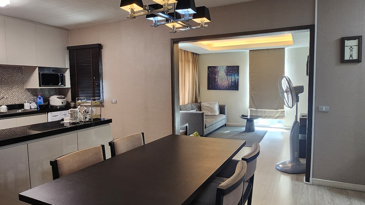 Two-bedroom, one-bathroom condo with full amenities, conveniently located in the heart of Muang Thong Thani. Close to shopping malls and IMPACT Arena, perfect for families and travelers seeking comfort and convenience. ห้องพักสองห้องนอนหนึ่งห้องน้ำ พร้อมสิ่งอำนวยความสะดวกครบครัน เดินทางสะดวก อยู่ใจกลางเมืองทองธานี ใกล้ห้างสรรพสินค้าและอิมแพ็คอารีน่า เหมาะสำหรับครอบครัวและนักท่องเที่ยวที่มองหาที่พักสะดวกสบาย