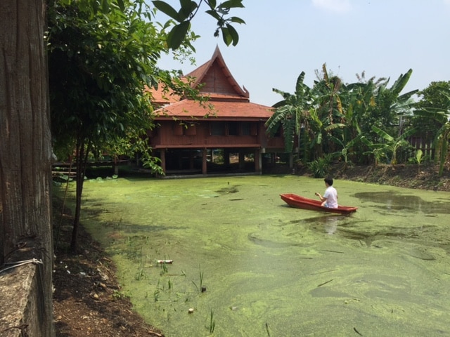 Thai Teak House with Pond located in quite and peaceful neighborhood, Traditionally fully furnished 5 mins walk from Local Train Station. 10-15 mins by car to Shopping Mall, famous Thai Boxing School, Floating Market, Grand Palace and Old Bangkok.