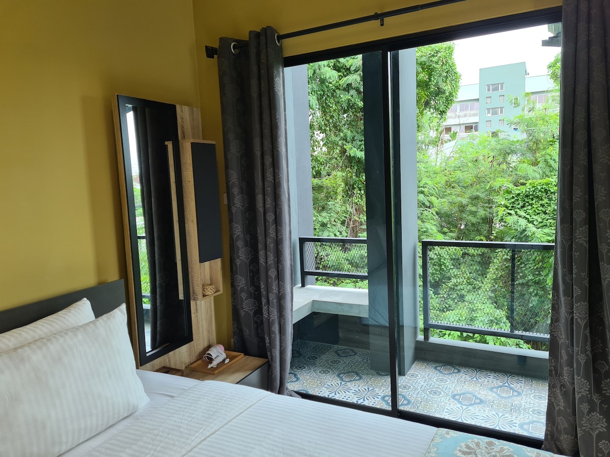 单间公寓,加大双人床/500 Mbps无线网络-MRT Sutthisarn 308