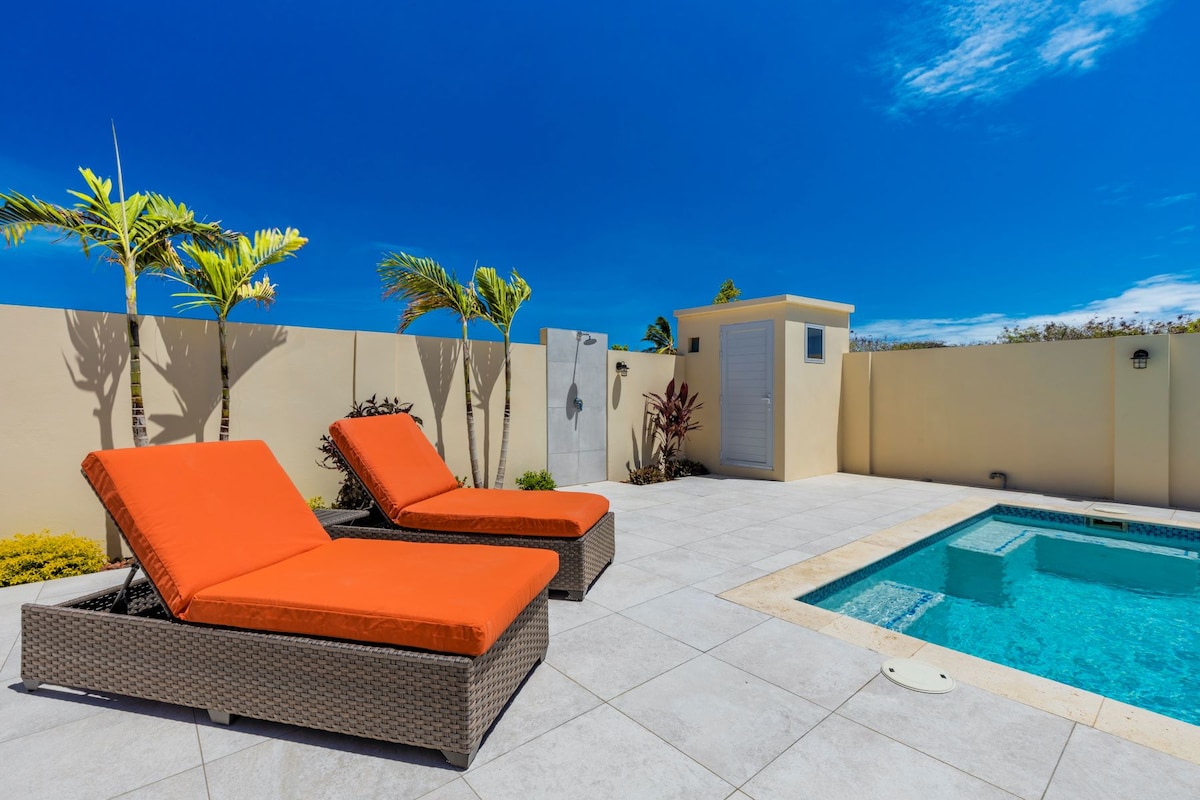 Enjoy true Caribbean Luxury in a beautiful space. Brand new executive 3 bedroom private villa with a pool and jacuzzi. Beautifully appointed, high end home new to the rental market. Perfect for a large family, or couples looking to enjoy an upscale experience and all that Aruba has to offer. Amenities include: wi-fi, alarm, safe, Built in BBQ/ out door kitchen, beach chairs, cooler, guest supplies such as toilet paper, dish soap, laundry detergent, and much more...