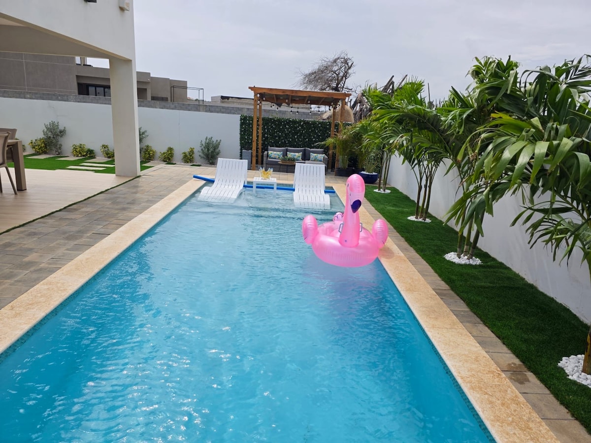 Experience Aruba from the comfort of this modern, comfortable home with a 5-minute walk to some of the world's greatest beaches. The house is in a very quiet neighborhood with a PRIVATE backyard. Enjoy your own sky-blue pool, bar-b-que, tiki bar, and sitting areas. An excellent choice for families who want to live like the island locals and enjoy nearby restaurants, night clubs, resorts, malls, and beaches.