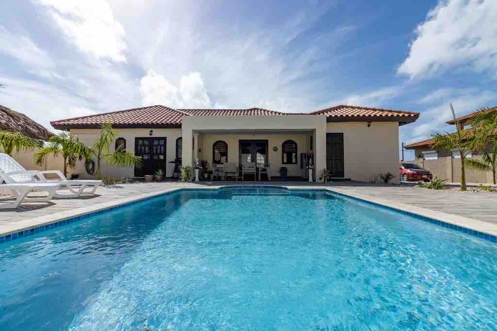 Welcome to Villa Rinascente! This beautiful, newly built, fully-gated Private Villa is your home away from home on the sunny island of Aruba. This modern island style, 3-bedroom Villa is all you need for mini staycation. Enjoy the fully-gated property with many lounge chairs around the beautiful pool or relax in the shade, under the palapa. Just located off Palm Beach road and is less than a 5 minute drive to the high-rise hotel area and beautiful Palm Beach and world top-rated Eagle Beach.