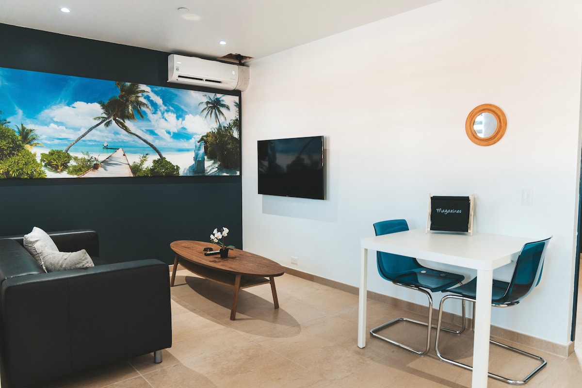 Charming & Cozy Studio in Aruba! 🌴 Perfect for solo travelers or couples, our stylish studio apartment offers a comfortable retreat for up to 2 guests. Thoughtfully designed, the space features a fully equipped kitchen, a cozy sleeping area, a modern bathroom, air conditioning, and a Smart TV with Wi-Fi—ensuring a relaxing and convenient stay.