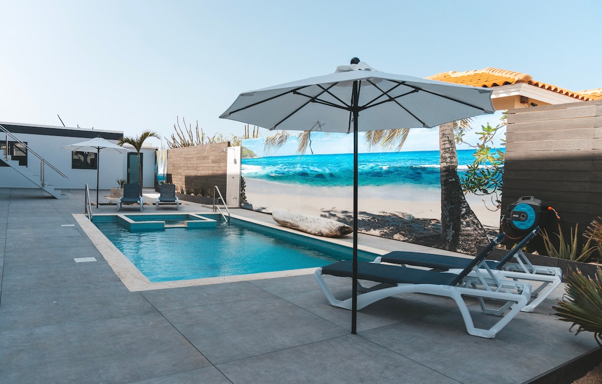 Please read entirely to avoid confusion. Solimar Villas consists of 4 modern and fully equipped apartments, Villa Sol, Villa Mar, Villa Luna (2BR) and Villa Kunuku (private pool). All of these units share one beautiful patio with pool. See also our other apartment Villa Kunuku. Villa Kunuku (not this villa) is a one bedroom apartment with its private pool. Wonderful place to escape from the hustle and bustle of the city life, but still close to all the major tourist attractions.