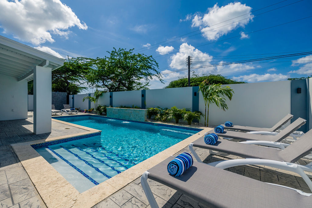 Welcome to Villa Rinascente! This beautiful, newly built, fully-gated Private Villa is your home away from home on the sunny island of Aruba. This modern island style, 3-bedroom Villa is all you need for mini staycation. Enjoy the fully-gated property with many lounge chairs around the beautiful pool or relax in the shade, under the palapa. Just located off Palm Beach road and is less than a 5 minute drive to the high-rise hotel area and beautiful Palm Beach and world top-rated Eagle Beach.