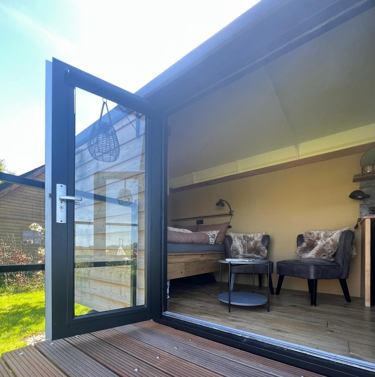 Saddle up and experience the Wild West in the heart of the Dutch woods. Relax on the porch or step into our cabin, and you’ll feel like you’re in a cowboy movie. The décor is rustic and authentic, with Western-style furniture, cowboy hats, and other Western-themed elements. Our Forest Retreat is the perfect place to live out your cowboy fantasies and experience the Wild West in the heart of the Dutch woods with a great fireplace outside to roast your marshmallows.