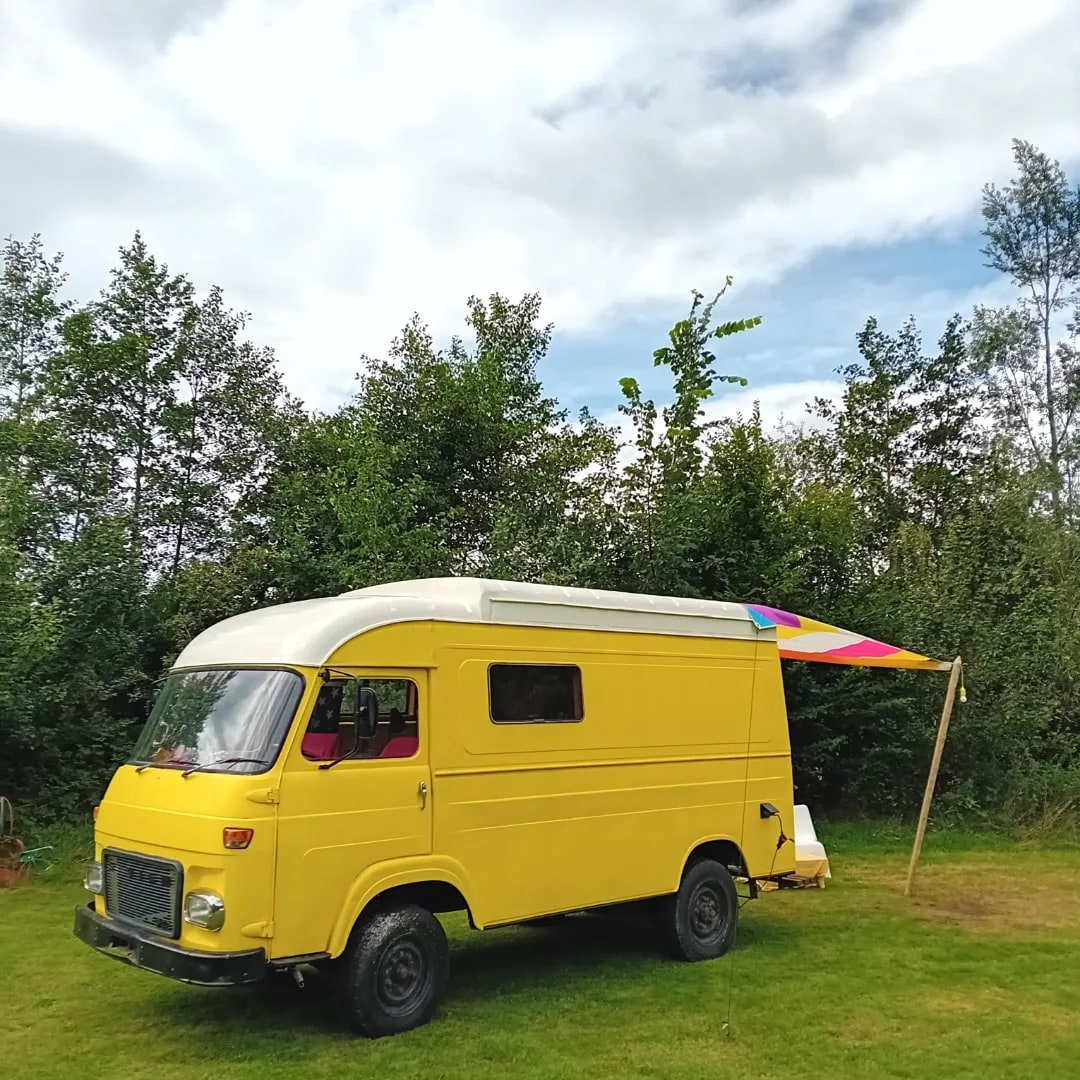 Geniet van de prachtige, natuurrijke omgeving van deze romantische accommodatie. Een knus 2pers bed met opberg ruimte boven het voeteneind. Keuken met 3pits gastel, koelkast met vriesvak, Een zitje met 2 fauteuils en een gashaard voor de koudere dagen. Een barretje waar je aan kunt ontbijten of eventueel werken. Overdekte buiten bar met uitzicht over de landerijen en het bos. De badkamer bevind zich in de oude stookhut voorzien van inloop douche, wc en wastafel. Kortom camperen met luxe!