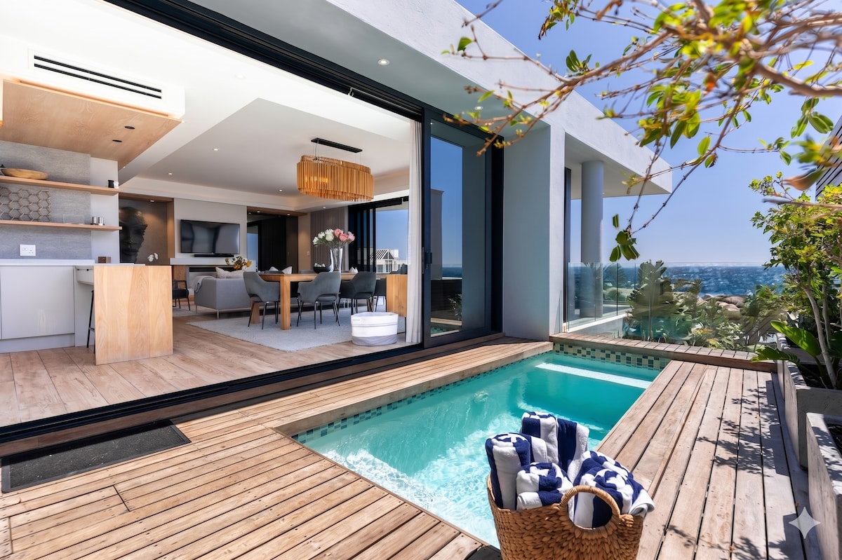 Only a few steps away from Camps Bay Beach! Wake up to incredible Sea views & views of Lion’s Head, Table Mountain & The Twelve Apostles. Spend afternoons lounging by the pool, having a BBQ, or enjoying pizza straight from the pizza oven as the sun dips into the ocean. Inside there are two spacious bedrooms & elegant finishes. The open-plan living spaces flow seamlessly onto the wraparound balcony & entertainment deck. A perfect balance of luxury & relaxation with a private sauna.