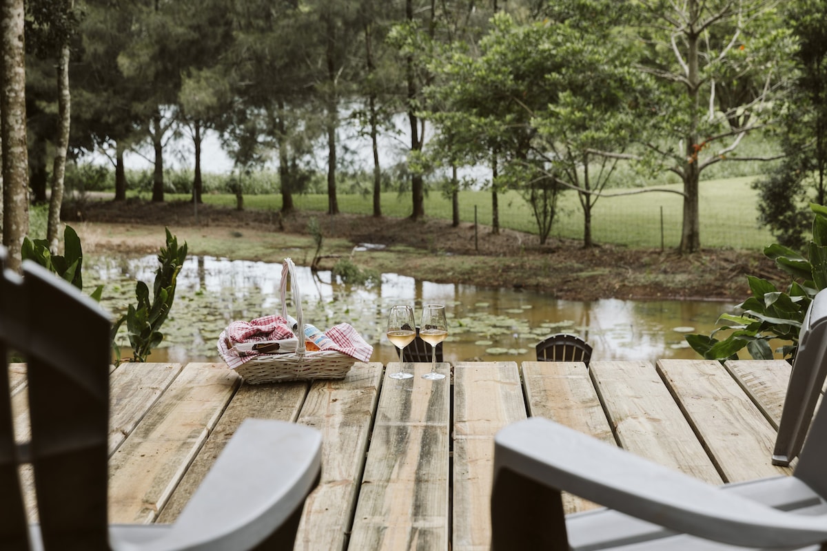 Relax in our rustic timber cabin which overlooks sprawling green hills. Curl up next to the cosy fireplace, indulge in the sheltered and private outdoor bath, stroll down to the creek to spot platypus or simply sit on the deck and be captivated by the breathtaking sunsets. Our property is totally eco-friendly; all electricity is generated from the sun, we catch rain water and have our own environmentally-friendly waste-water system. The cabin is ideally suited for a romantic couple's getaway.