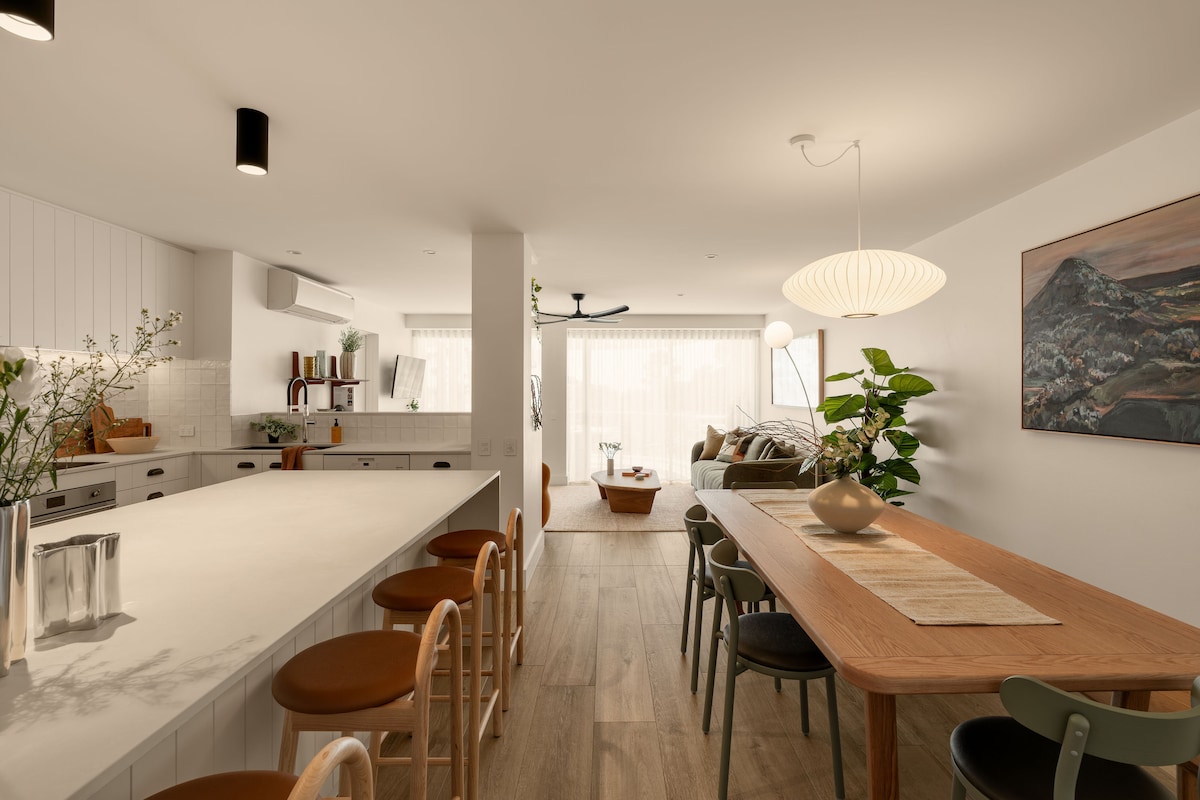 Beautiful, Peaceful, Healthful. Ideal place for a truly romantic, restful, beautiful, rejuvenating get away!! Described by one of our recent guest as " ... A really magical place! " and “the perfect apartment”. Our Apartment is in a unique location. A short walk to the beach and Hastings street. Free Parking, Lap Pool, Family Pool, Steam Sauna, Gym, Parking, a full equiped kitchenette, Nespresso Coffee Machine , NBN Free Wifi, SAMSUNG 55 QLED 4K SMART TV, Catch up TV, Netflix, etc.