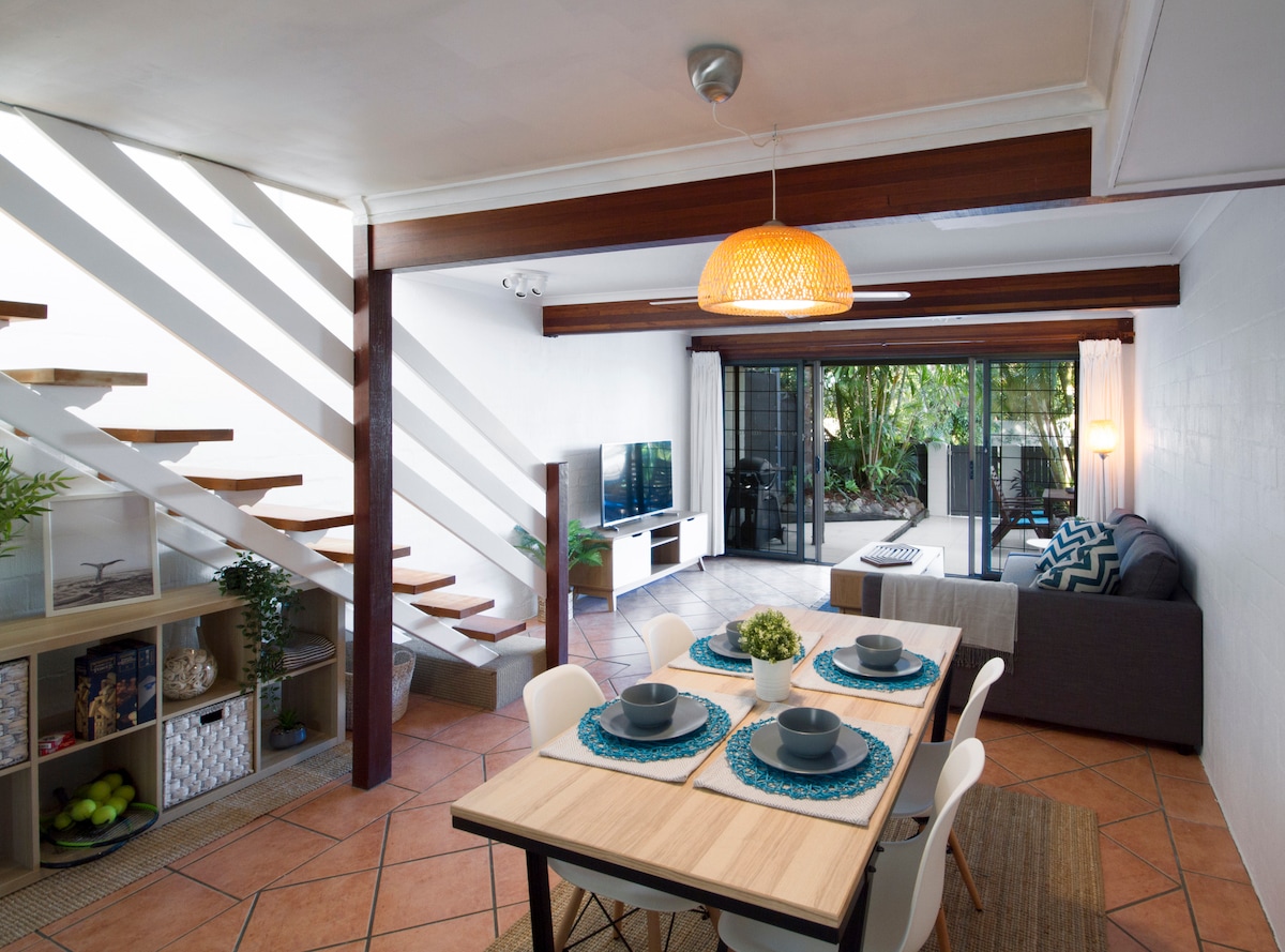 Unwind at our stunning 2-story townhouse, where Sunshine Coast beach charm meets National Park tranquillity. Perfect for families or romantic escapes, this haven offers relaxation, adventure, and comfort. Enjoy breathtaking Mount Coolum views, a short stroll to the beach, and vibrant cafes nearby or savour complimentary espresso and tea in the small fully fenced courtyard. Pet-friendly stays welcome for one small/medium sized, house-trained animal only. Book now and create unforgettable memories