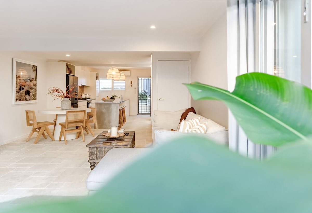 Whispers of the Caribbean ~ stunningly renovated modern free standing townhouse located in a quiet picturesque part of Pilchers Gap in Sunshine beach. Beach access is right on your doorstep and Sunshine Beach Village is only a short five. minute stroll away. This home features beautiful ocean views from the top level, luxurious interior, air conditioning and ceiling fans throughout, wifi and Smart TV. World famous Hastings St is a 5 minute car or bus ride away. Maximum 4 guests.