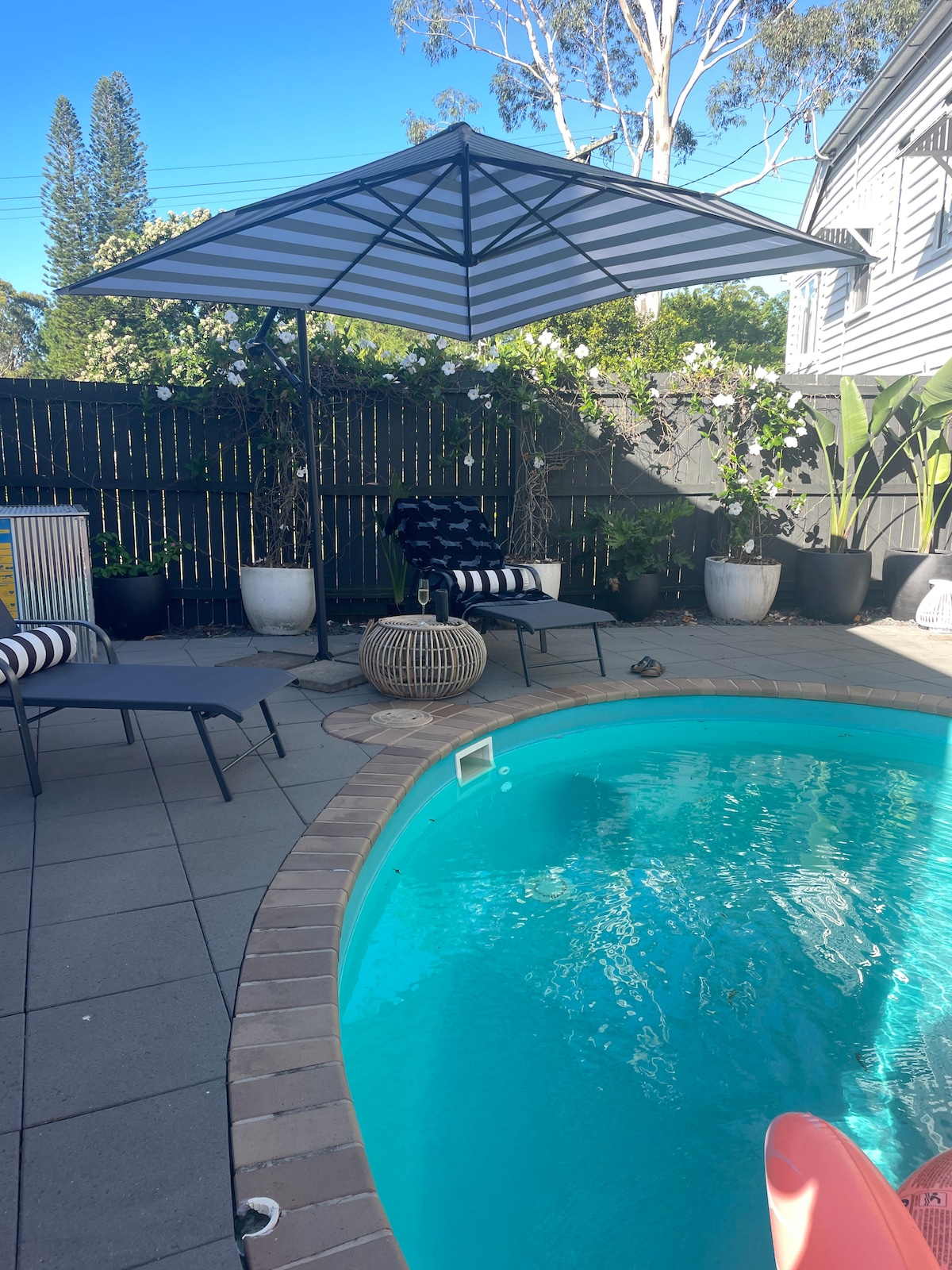 This STYLISH, INDIVIDUAL & UNIQUE space on the entire lower level of our fully renovated historical Queenslander with private entry, includes EXCLUSIVE use of the 12mtr swimming pool. Gorgeous large living room with LCD TV, seperate kitchen, dining area & bathroom with walk in shower. Incredible large deck with dining table, barbecue all overlooking the stunning pool. Very close to Tewantin shops, Noosa River and North Shore and only 10 min drive to Noosa Main Beach, Hastings St.