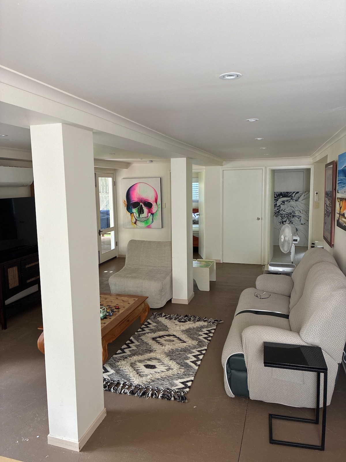 Beautiful quiet neighbourhood within Noosa National Park , Walk 6 minutes to the local beach, 7 minute drive to Noosa Main Beach, 5 minute walk to local buses, 20 minute walk to Sunrise Beach Brand new unit , beautifully decorated upscale private suite with private entrance, full amenities of large kitchen , large bathroom with shower, double vanities, washer and dryer, sleeps up to 5 , bedroom with king bed and closet, living area with queen pullout bed and single day bed, tv, free parking