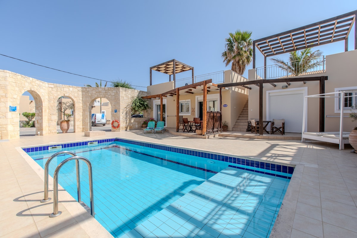 *Please message BEFORE you book. I list on many sites and my calendar may not be up-to-date. I usually respond within 1 hour* • Villa unit in a complex-residence • Shared pool • 50mt to Nopigia beach • 2 step away from taverna,restaurant,beach bar • Small BBQ ( charcoal) • Mountain/Olive hills and little sea view • Roof terrace with sunbeds and dining area • Strategic location to reach Falasarna,Balos,Elafonissi • 5 min drive to Kissamos • 25 min drive to Chania Old Town + Venetian Harbor