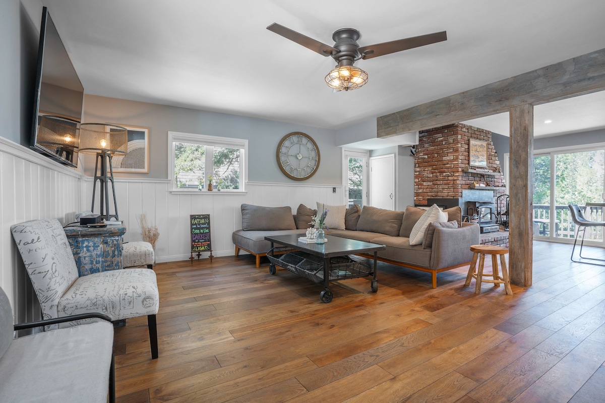 As you walk up stairs passing native boulders and trees, you see an A-frame cabin in the woods begin to peek out, inviting you. Once upon the front deck, the large pane windows draw you into this spacious, high-ceiling, open-concept cabin. Inside, these same windows that drew you in, will encourage the same gazing now, except outwardly. Tastefully designed and relaxing, you may not want to leave, though Big Bear, and Lake Arrowhead all beckon within 30 mins drive... Welcome to The Scandia 🦌