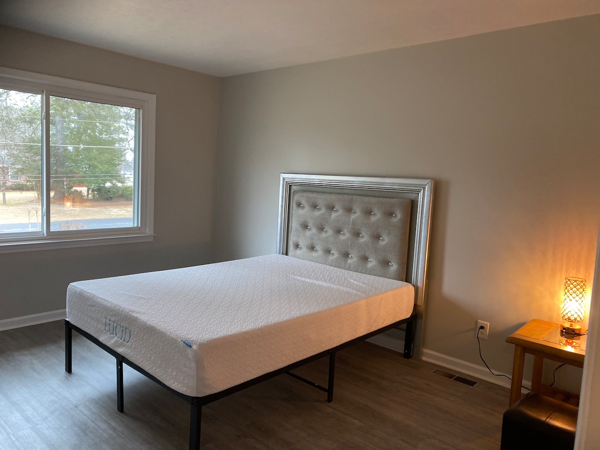 This wonderful cozy studio is super private, with its own entrance right on the side of the house. Plus, it comes with a full kitchen and bathroom. It’s a peaceful, private space with a well-equipped kitchen featuring a big refrigerator, a queen-size bed, a 45” smart TV, a private entrance, an outdoor deck that leads to the backyard, and parking right next to the unit. We’re just a 30-minute drive to downtown Atlanta, Mercedes-Benz Stadium, the GA Aquarium, and 15 minutes to Gas South Arena.