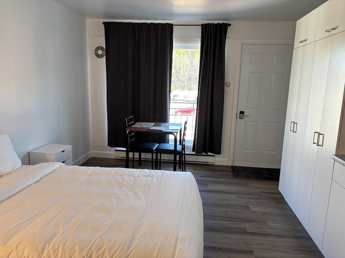 Simplifiez-vous la vie en restant dans ce logement tranquille et bien situé. Cet ancien motel a été rénové pour offrir un loft vous permettant d'avoir votre espace personnel pour tous vos besoins. Incluant un réfrigérateur, micro-onde à convection, Cafetière, grille-pain, vaisselle, Wi-Fi, télévision, serviettes, draps pour votre séjour. L'accès se fait de façon autonome avec un code de porte envoyé 24-48h avant votre arrivée No CITQ : 320829