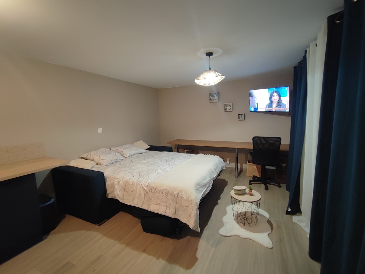 Studio indépendant de 20 m2, situé dans la propriété des hôtes comprenant une chambre avec une salle d'eau séparée avec douche et toilettes. Le logement bénéficie d'un lit de 160. Nous sommes situés à 400 m de la forêt de Clairmarais dans un secteur calme. Des vélos sont à votre disposition gratuitement. Vous bénéficiez d'une terrasse et d'un coin repas mais pas de cuisine. Il y a un frigo pour les hôtes dans le garage à côté du studio.Nous vous proposons avec supplément des planches apéritives.