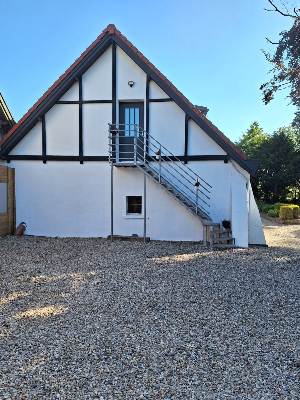 Cet hébergement neuf, dans un environnement de verdure, sera parfait pour un court séjour en métropole lilloise, proche de la frontière belge (Bruges, Gand, Bruxelles...) L'appartement dispose d'une chambre avec lit 160x200cm, une cuisine équipée, une salle de douche, toilettes indépendant, coin repas et coin salon (avec canapé convertible). Accès par un escalier extérieur. Linge de lit fourni. 1 place de parking. Prévu pour 4 personnes maximum.