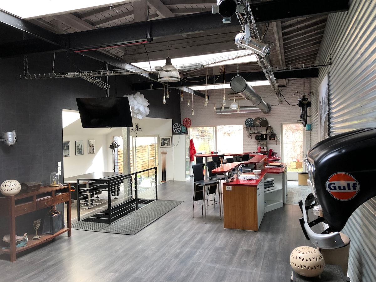 Ce loft (2017) affiche un style unique, avec un accès direct à la Deûle pour vous balader : - Duplex dans un ancien bâtiment industriel totalement rénové avec grande luminosité, ses grandes fenêtres industrielles sans vis à vis - Un bel espace de vie (+50 m2) - Un extérieur (terrasse). 110 M2 fonctionnel et cosy : 2 salles de bain , 1 terrasse. Les commerces de proximité accessibles à pied à 5 mn Deux chambres indépendantes . Wifi . Lave linge disponible . Tv avec canal + à disp