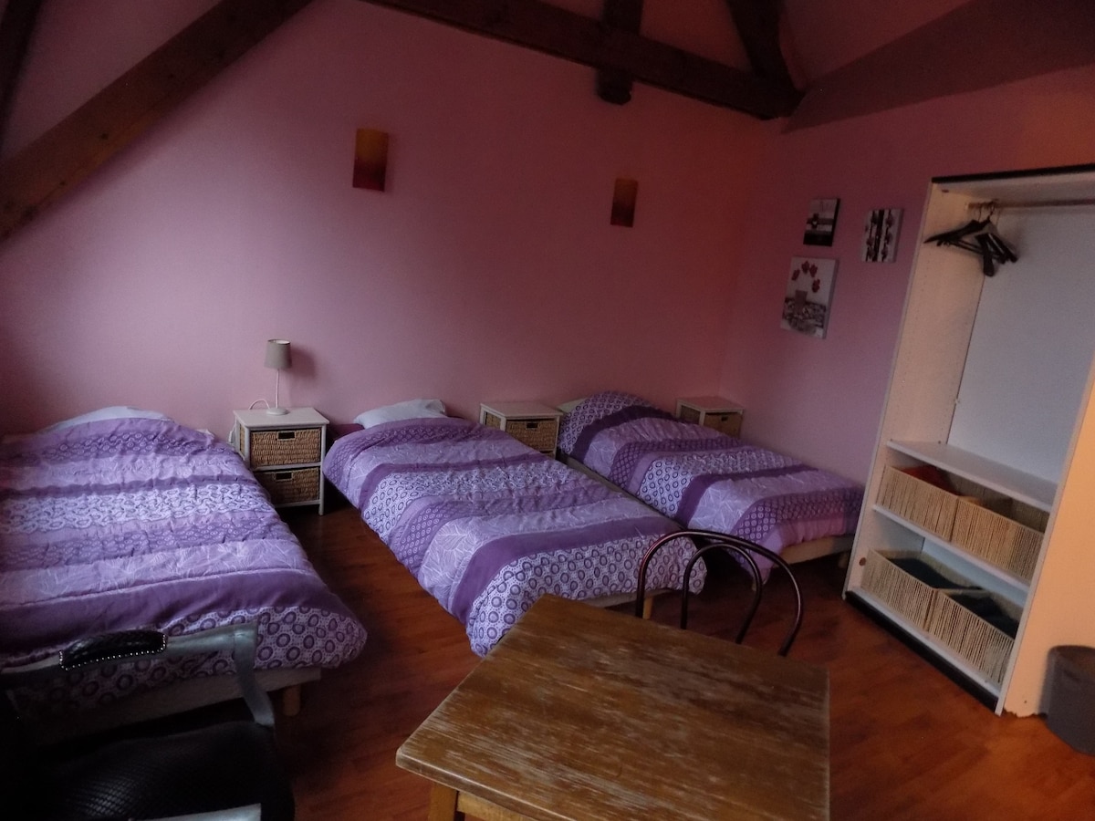 Garage reconverti en gîte dortoir insolite partagé, jusqu'à 12 adultes qui en assurent la propreté. RdC 7 lits avec draps, plaid, taie, séparés par rideau; Mezzanine petite taille 6 matelas . Douche chaude, wc, lavabo, coin repas, bar, frigo, micro-onde, plaques induction, cafetière... Préau, table repas. Réservez votre brunch en + sur ma terrasse. Supermarchés 300 m ouvert 7 j / 7. Fumeurs à l'extérieur côté Parc Wellington. Pour la clé, prévoir dépôt de garantie 200€ en chèque rendu au départ.
