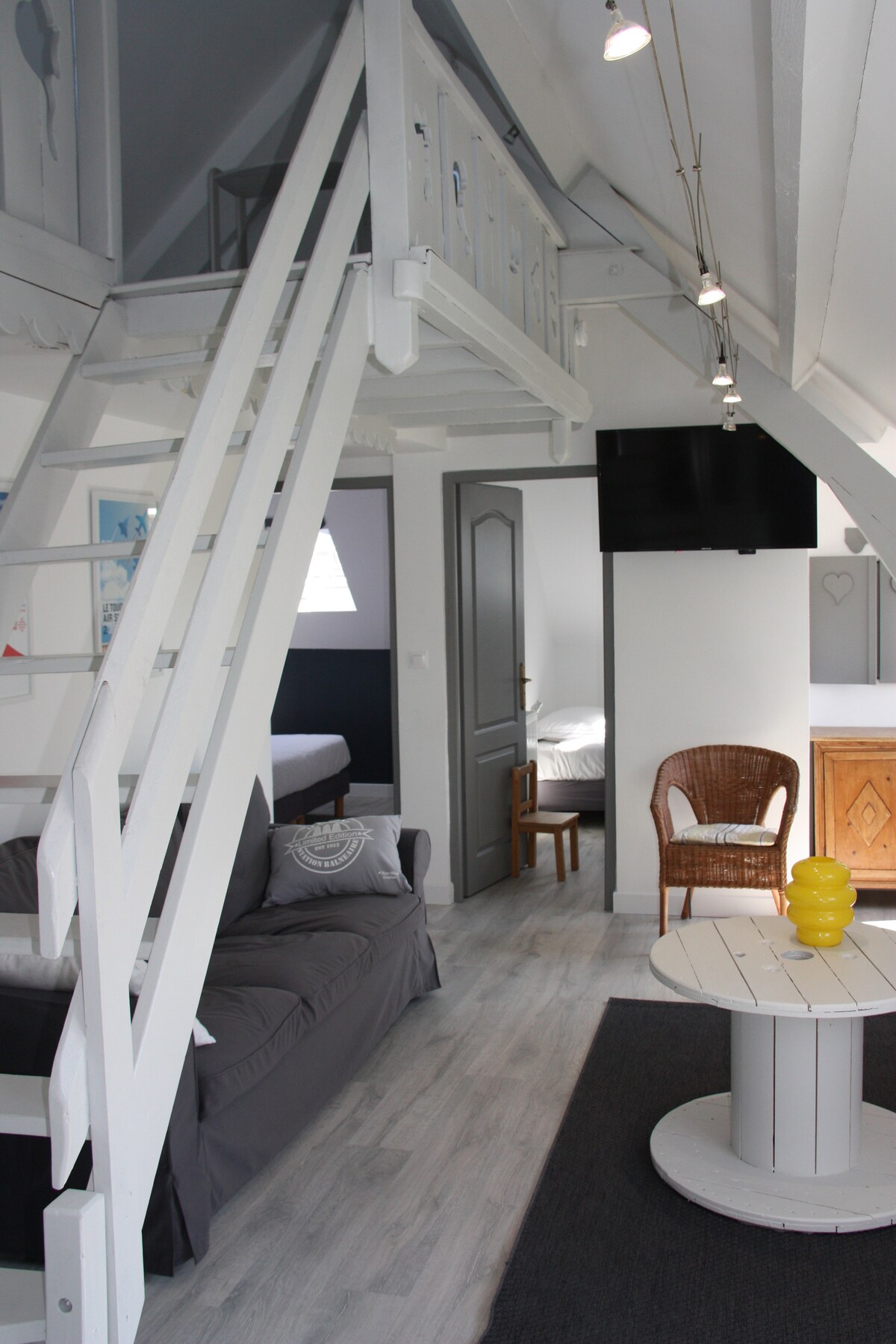 Situé à 70 m de la plage , et du centre ville Classé 3★ - Résidence de tourisme cette maison lumineuse et cosy allie confort moderne et esprit Bord de mer. Profitez d'un séjour convivial avec une belle pièce de vie baignée de lumière grâce à sa grande baie vitrée et son puit de lumière . L'espace comprend un salon confortable, une salle a manger chaleureuse et une cuisine équipée. A l'étage , une mezzanine accueillante abrite un lit double et dans le salon un canapé convertible pour deux pers