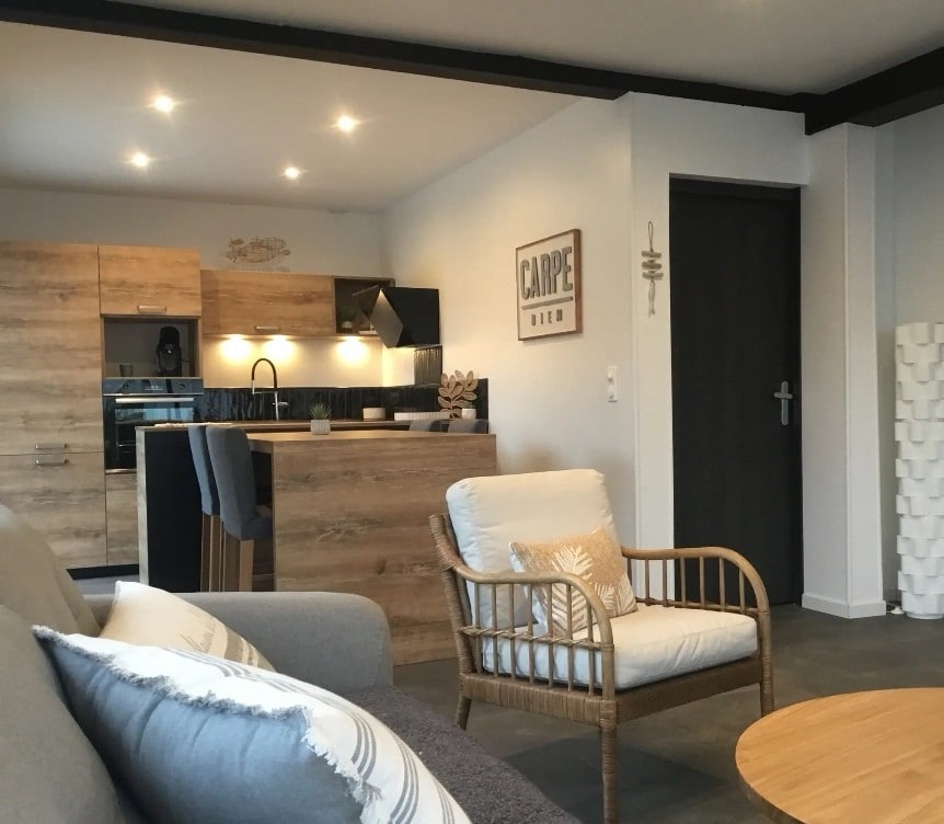 Elegant and modern villa in a quiet location for 14-15 people with all amenities (also for children). Spacious living room with tasteful furniture and new equipped kitchen. Large, intimate terrace with sun loungers and armchairs, sunny in the afternoon and evening. Beautiful flowered garden (fully enclosed) with fruit trees. Ideal location in the heart of the hiking trails to recharge your batteries and to discover the Opal Coast on foot or by mountain bike, at 1.5 km from Cran d'Escalles.