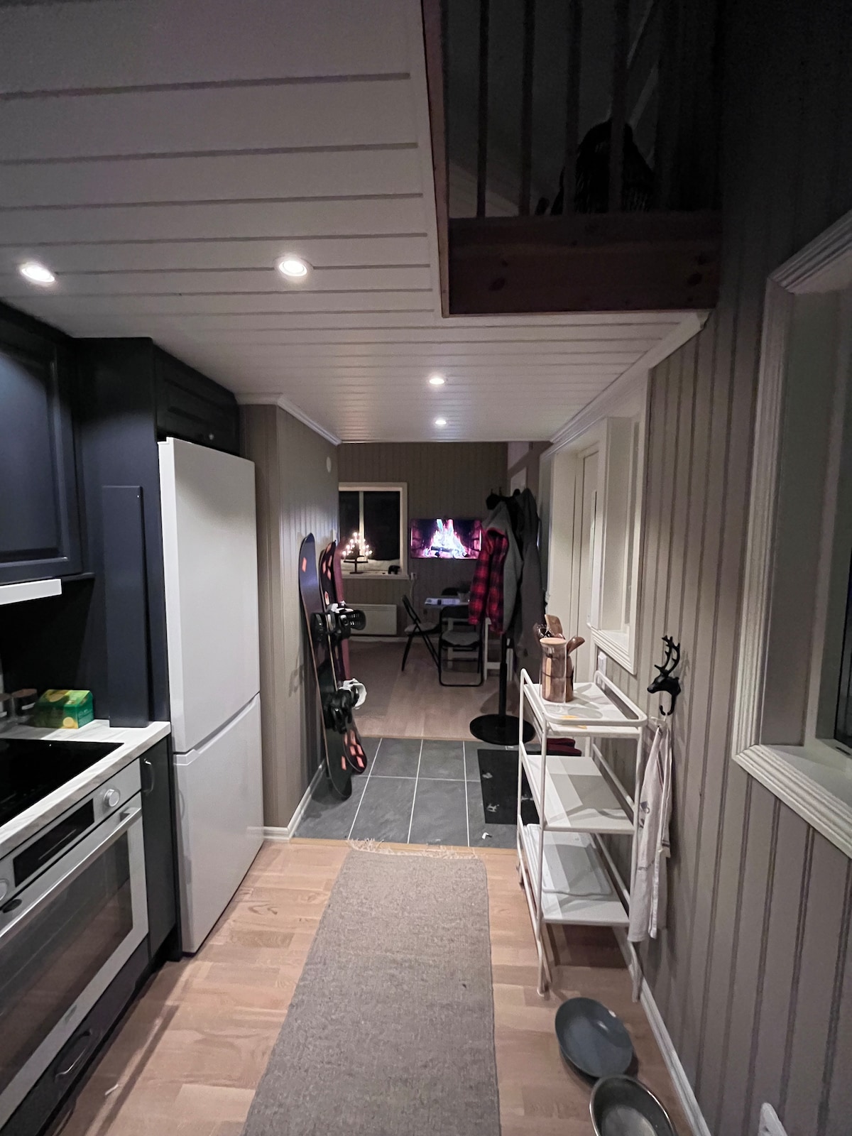 House (25 sqm). Private entrance, toilet, shower cabin & washing machine. The price includes bed linen, towels & final cleaning. One large room with a bed (140 cm), sofa (which can be used as a bed), desk. NO KITCHEN but there is a small refrigerator, micro & water boiler. As a hotel room - larger. Good storage and drying facilities. WIFI, TV with apple TV. Own part of patio. Not shoveled in winter. Parking space - by house. "Trixy" driveway up, due to road conditions.
